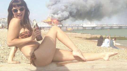 Mientras la gran mayoría de los bañistas veían cómo los bomberos trataban de sofocar el incendio, una espontánea vacacionista decidió aprovechar el caos, el humo y también el cielo despejado para tomarse una coqueta fotografía.
