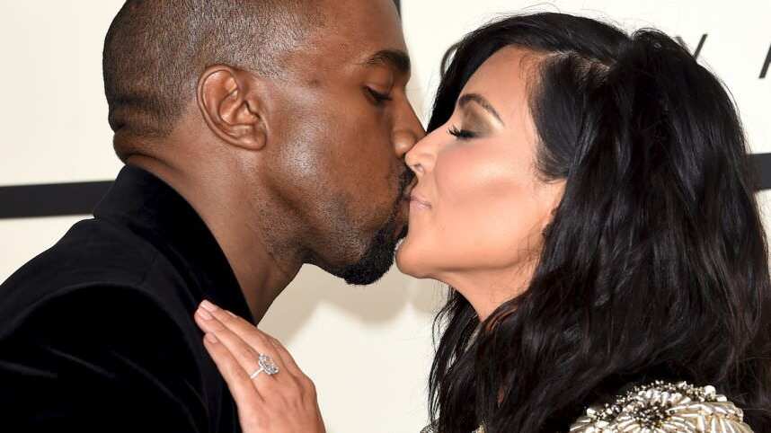 Durante su paseo por la alfombra roja de los Grammys, Kanye no pudo resistirse y decidió poner las manos en el famoso y conocido trasero de su esposa, al mismo tiempo que le planteba tremendo beso.