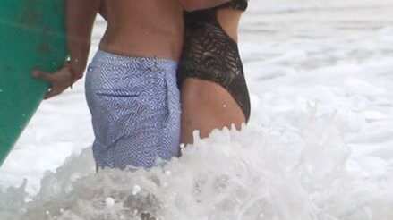 Entre besos y arrumacos, la pareja de tórtolos fue captada de lo más enamorada en las playas de Ibiza.