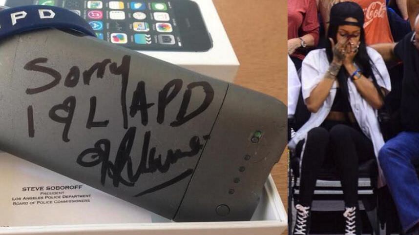 Para reparar el daño, la cantante donó 25 mil dólares al fondo de oficiales caídos de la Policía de Los Ángeles. Además, la cantante firmó el teléfono, que será subastado en la página eBay.