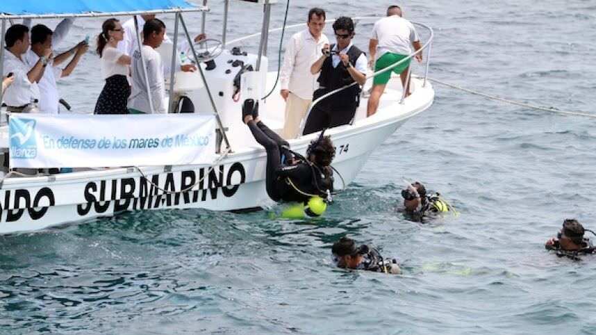 El candidato presidencial del Partido Nueva Alianza, Gabriel Quadri, arrancó su campaña buceando en el Parque el Arrecifal Veracruzano.