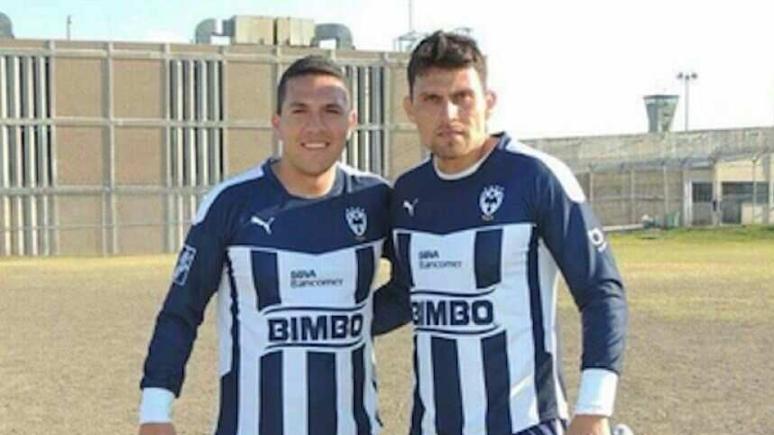 El arquero, quien defendió los colores de «La Pandilla» en tres etapas (1997-2001, 2002-2003 y 2009-2010), se muestra con el uniforme completo de los Rayados, acompañado de un sujeto, en una cancha de tierra dentro del penal.