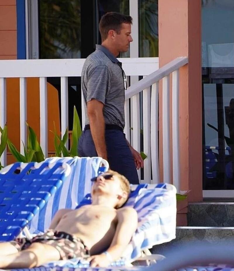 El polémico actor de Hollywood Armie Hammer está volviendo a dar de qué hablar debido a que desde hace unas semanas fue fotografiado trabajando en un hotel en las Islas Caimán. En cuanto a la imágenes, se puede observar que Hammer está utilizando un uniforme y se le ve pasando por el área de las albercas. Y aunque esta fotografía comenzó a circular en las redes sociales la revista “Variety” dijo que contactó al hotel para confirmar que Armie trabaja ahí y estos dijeron “que no es parte del staff”.