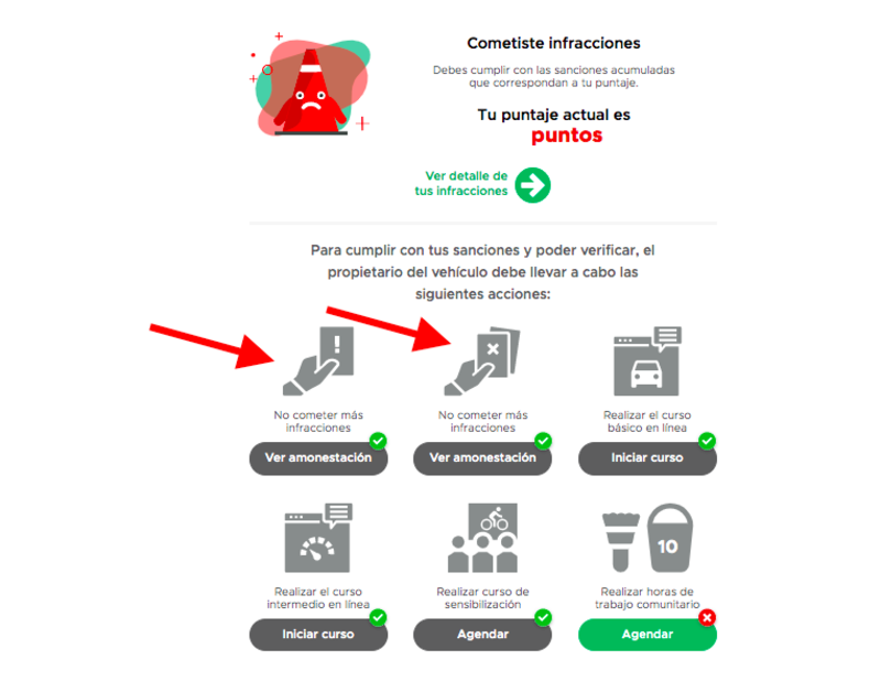 - Revisa tus puntos, en caso de que tengas menos de 10 puntos, consulta tus infracciones