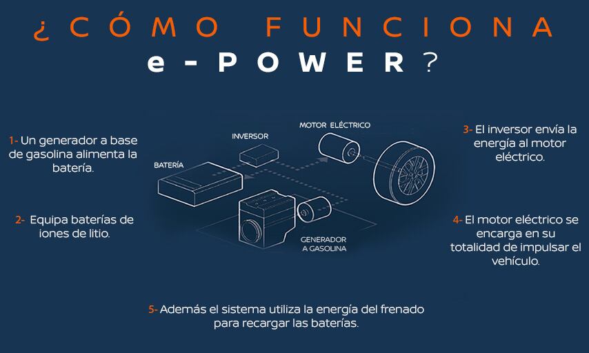 Nissan e-POWER es una alternativa a los eléctricos convencionales, ya que es una tecnología que cuenta con un motor eléctrico de alto rendimiento el cual se encarga de dar movimiento a las ruedas.
