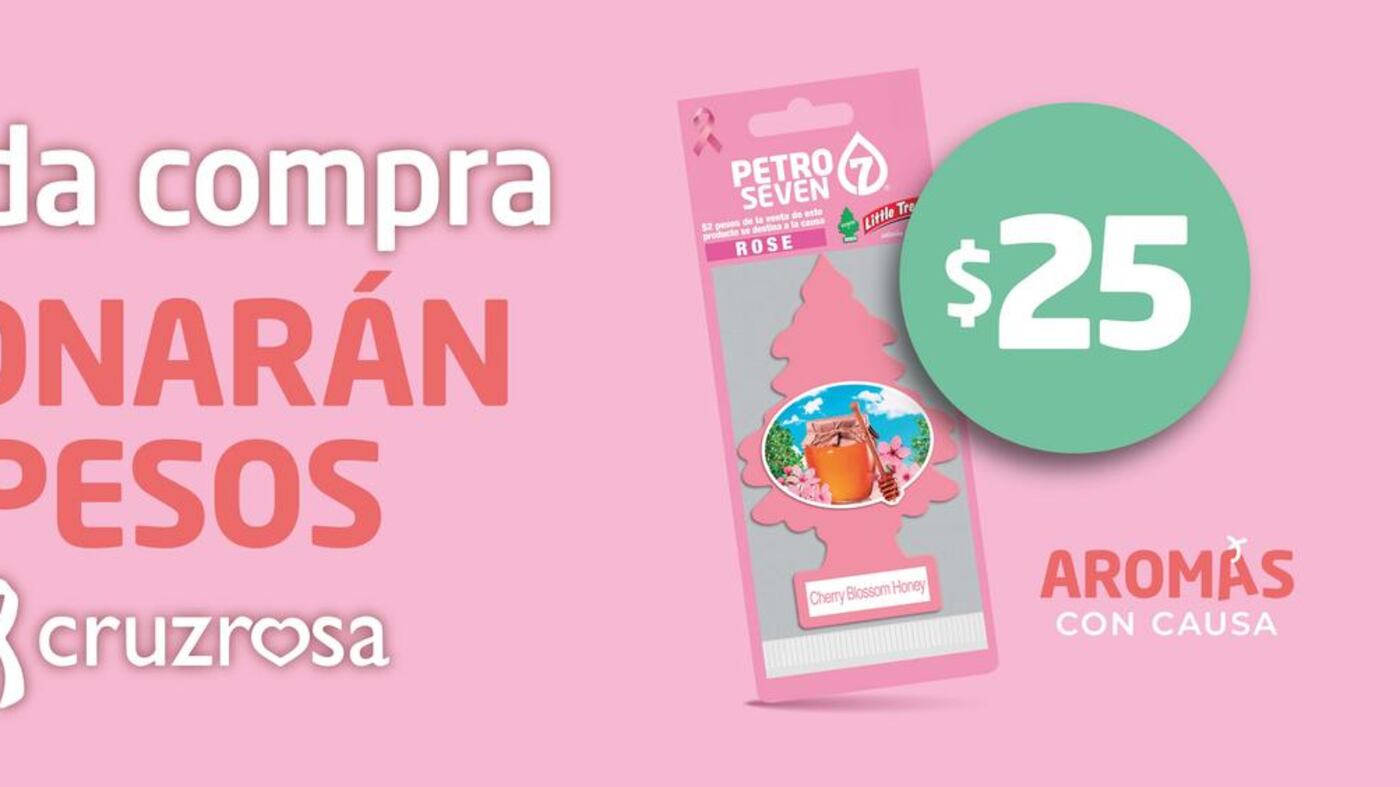 Petro Seven, marca gasolinera perteneciente a Iconn, desde hace seis años se suma a este llamado mediante la campaña “Aroma con Causa” que consiste en la venta de aromatizantes para auto en sus más de 250 estaciones de servicio, una parte de los recursos generados son destinados a la Cruz Rosa, asociación de beneficencia privada con sedes en Monterrey y Guadalajara y que mes a mes brinda atención especializada a miles de mujeres en su lucha contra el cáncer.