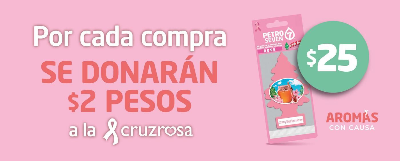 Petro Seven, marca gasolinera perteneciente a Iconn, desde hace seis años se suma a este llamado mediante la campaña “Aroma con Causa” que consiste en la venta de aromatizantes para auto en sus más de 250 estaciones de servicio, una parte de los recursos generados son destinados a la Cruz Rosa, asociación de beneficencia privada con sedes en Monterrey y Guadalajara y que mes a mes brinda atención especializada a miles de mujeres en su lucha contra el cáncer.