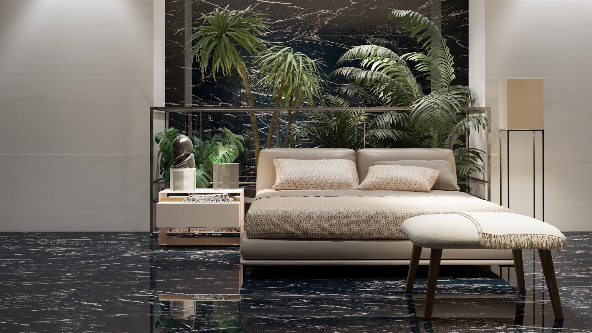 Una pieza de arte grande con un marco mínimo o sin colgar en una pared es perfecta como característica. Opta por una pequeña serie de arte en paredes expansivas, pero mantente alejado de la idea de tener pared de una galería porque desordenará el aspecto modernista.