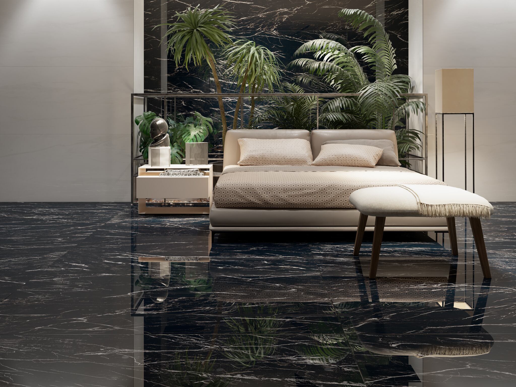 Una pieza de arte grande con un marco mínimo o sin colgar en una pared es perfecta como característica. Opta por una pequeña serie de arte en paredes expansivas, pero mantente alejado de la idea de tener pared de una galería porque desordenará el aspecto modernista.