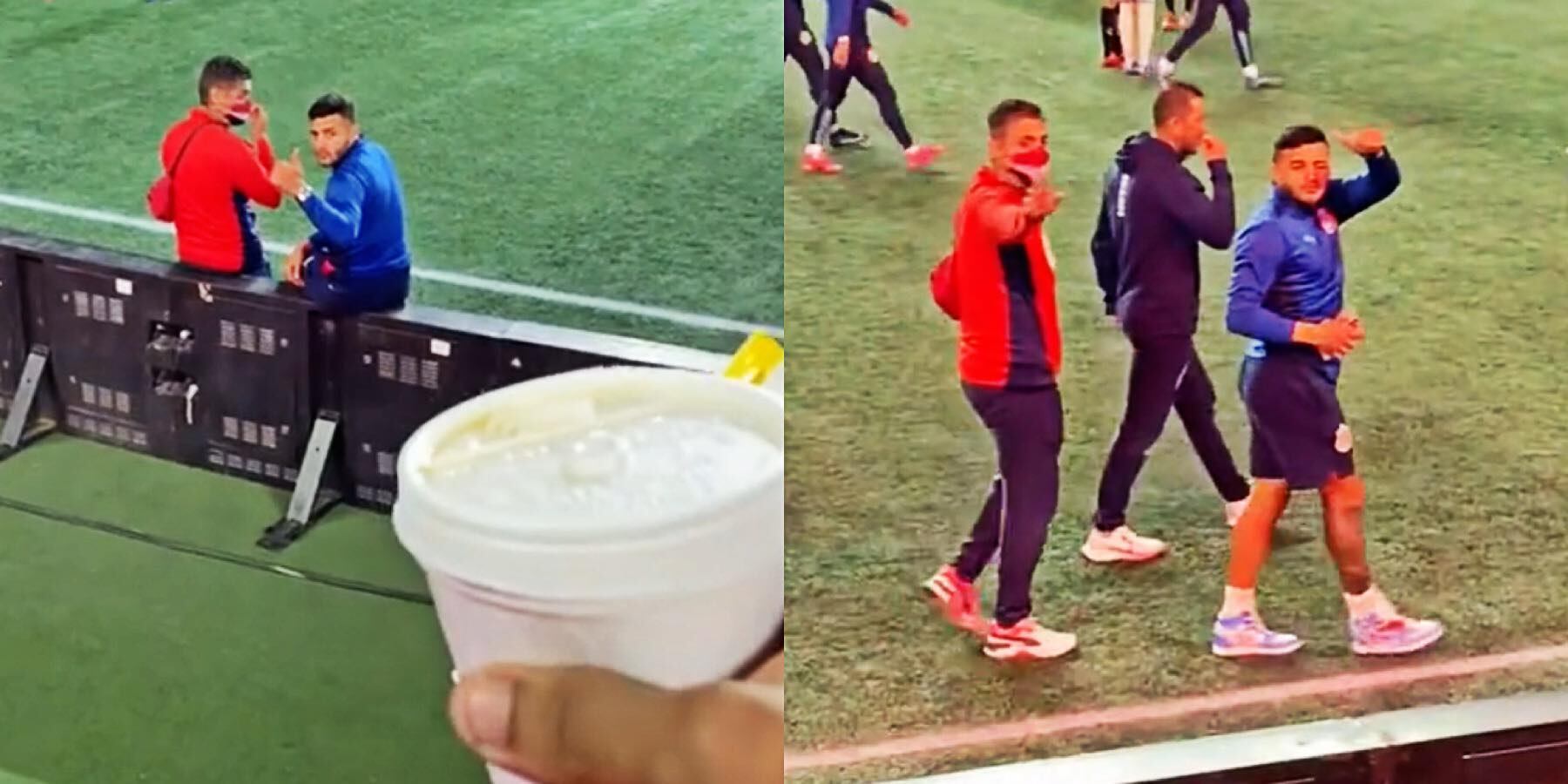 La estrella de Chivas se acercó hacia la tribuna para tomar la bolsa de cacahuates, los cuales se comió instantes después.
