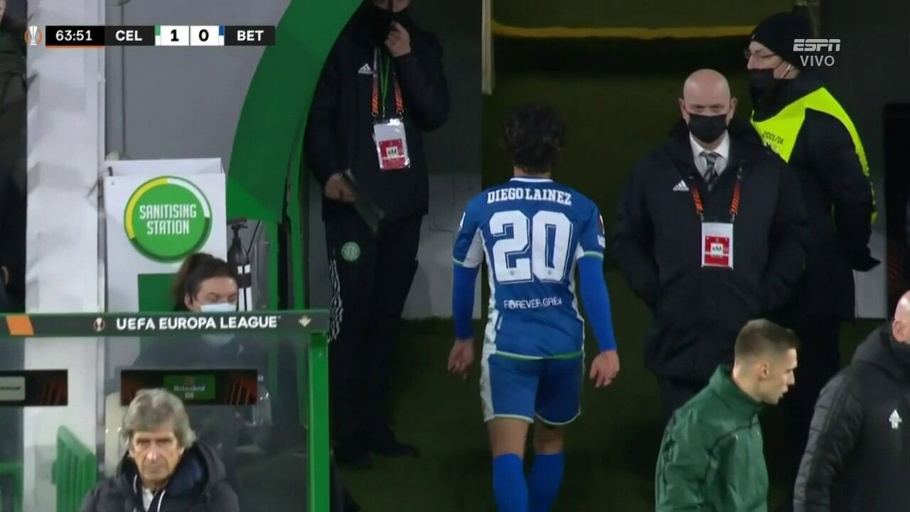Diego Lainez fue titular con el Betis en el duelo con el Celtic, de la sexta jornada de la Europa League; sin embargo, no tomó de muy buena forma el ser sustituido.