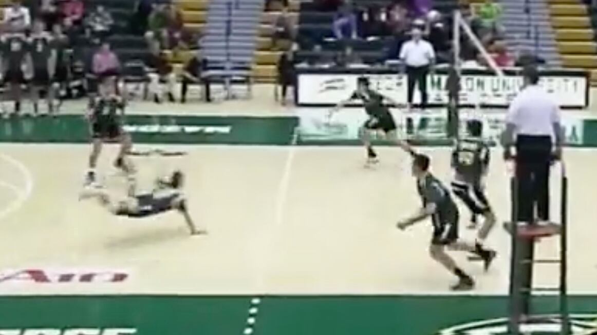 El voleibol universitario de Estados Unidos fue testigo de una acción espectacular, donde un jugador realizó un escorpión para salvar una jugada y además terminó consiguiendo un punto.