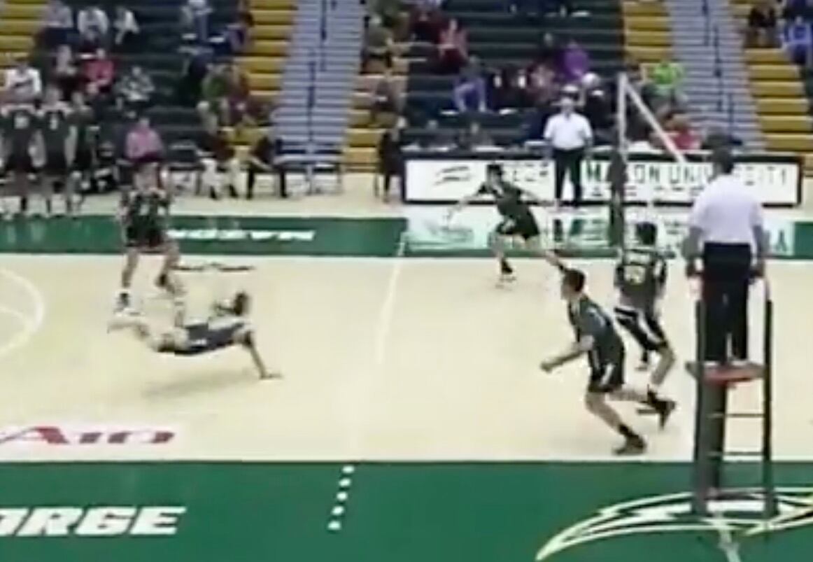 El voleibol universitario de Estados Unidos fue testigo de una acción espectacular, donde un jugador realizó un escorpión para salvar una jugada y además terminó consiguiendo un punto.