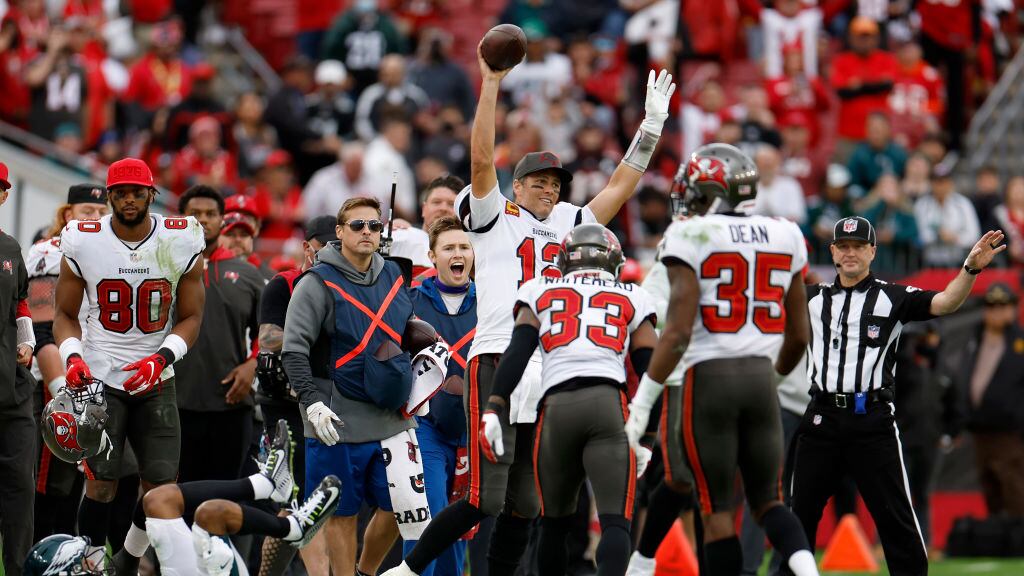 La defensiva de los Bucs también hizo su parte, interceptando a Jalen Hurts dos veces en el debut del quarterback de Filadelfia en playoffs.