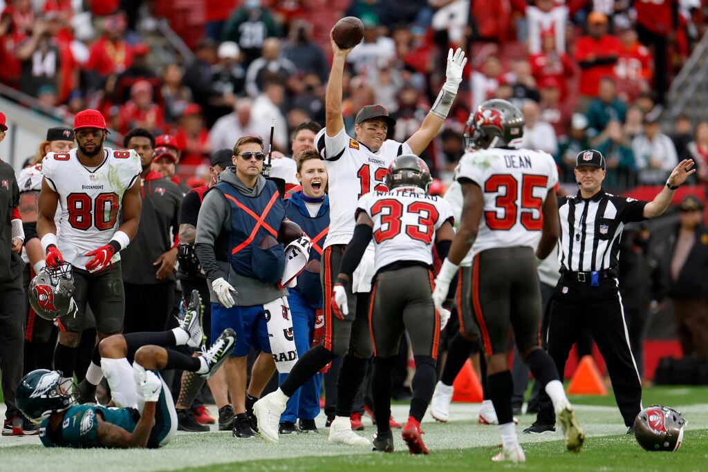 La defensiva de los Bucs también hizo su parte, interceptando a Jalen Hurts dos veces en el debut del quarterback de Filadelfia en playoffs.