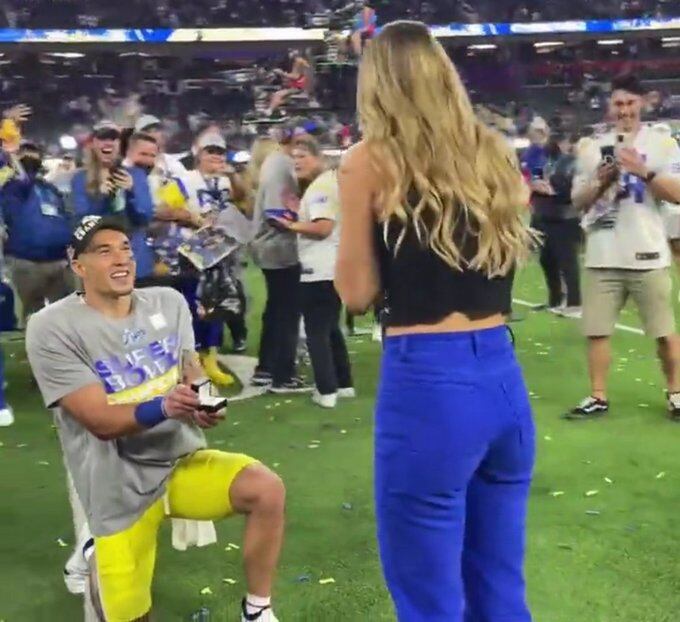 Los Ángeles Rams están de fiesta, después de conquistar el Super Bowl LVI frente a los Cincinnati Bengals, y uno de los jugadores realizó la propuesta más romántica en plena celebración.