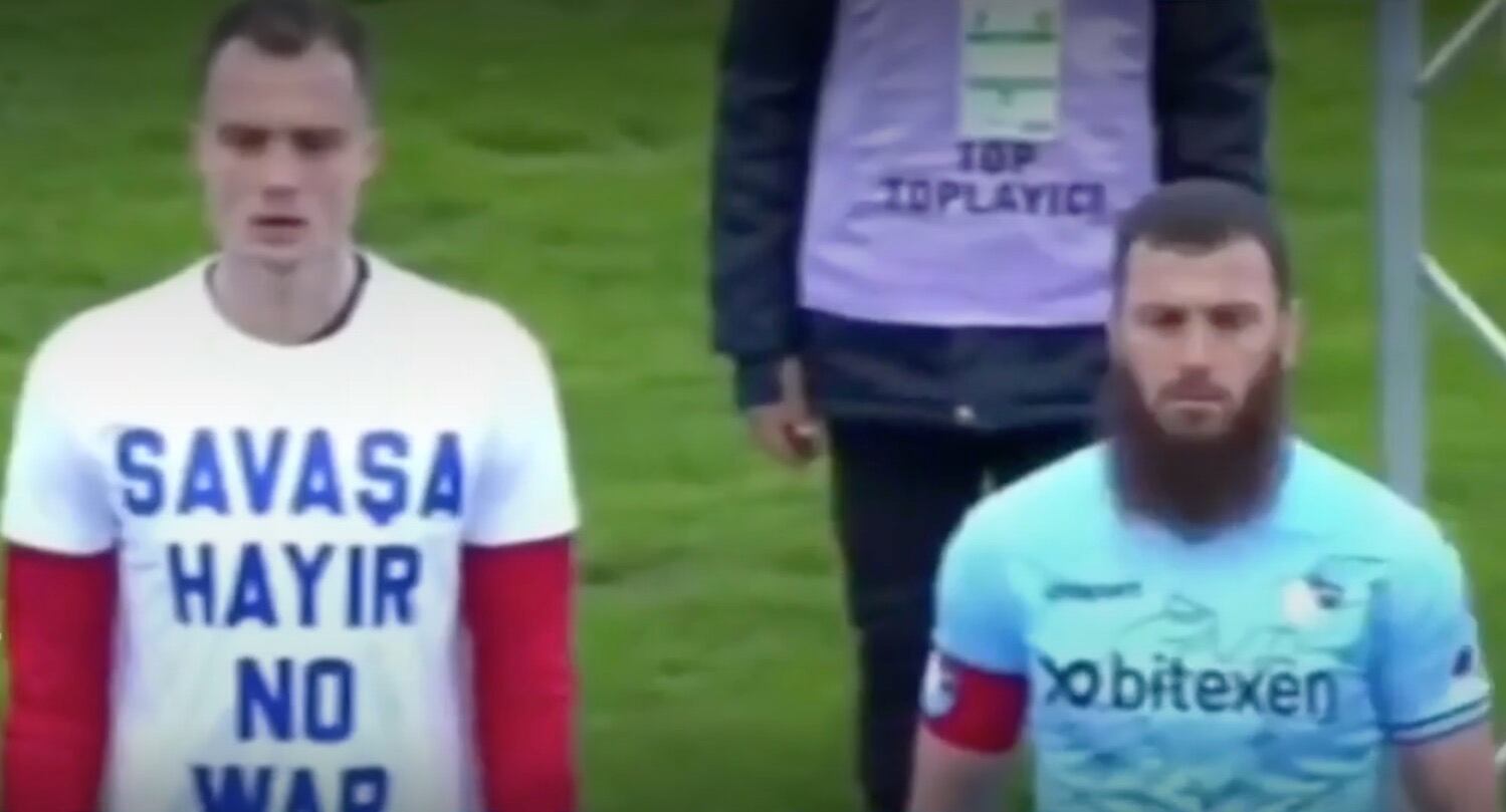 Los jugadores del Erzurumsport saltaron al campo con camisetas con la frase “No a la guerra” previo a su juego con el Ankaragücü, en la Segunda División de Turquía.