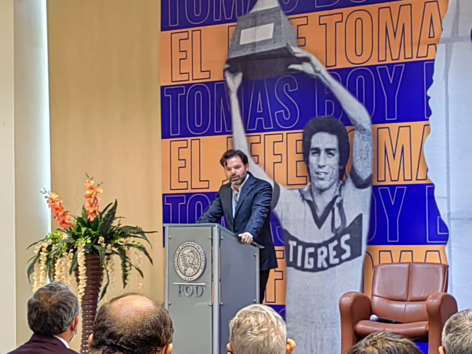 El mítico camisola número ocho de los Tigres Tomás Boy, fue homenajeado por la Universidad Autónoma de Nuevo León en las instalaciones de la Facultad de Organización Deportiva, en compañía de amigos, familiares y excompañeros del “Jefe” en su paso por los felinos.