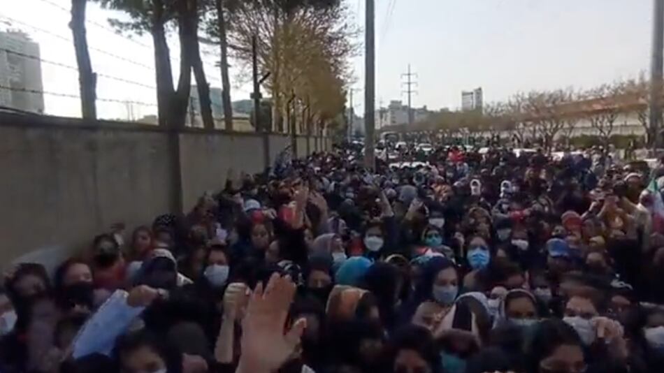 Un video que circuló en redes sociales mostró a centenares de mujeres aficionadas del futbol coreando la frase “Discrepamos” por la decisión de impedirles presenciar el partido en la ciudad nororiental de Mashhad.