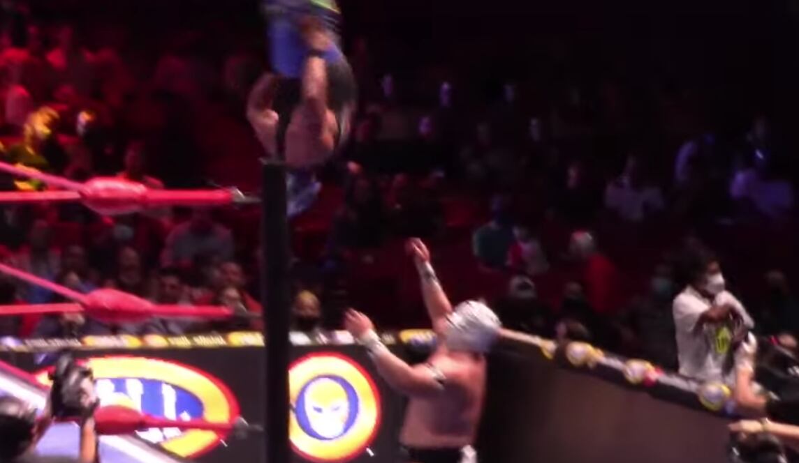 “Un espectacular vuelo de Stuka Jr. le provoca un potente impacto en la nuca al aterrizar sobre Gran Guerrero, que se ha llevado la victoria debido a que el técnico es trasladado al Servicio Médico”, informó el Consejo Mundial de Lucha Libre mediante su cuenta de Twitter.