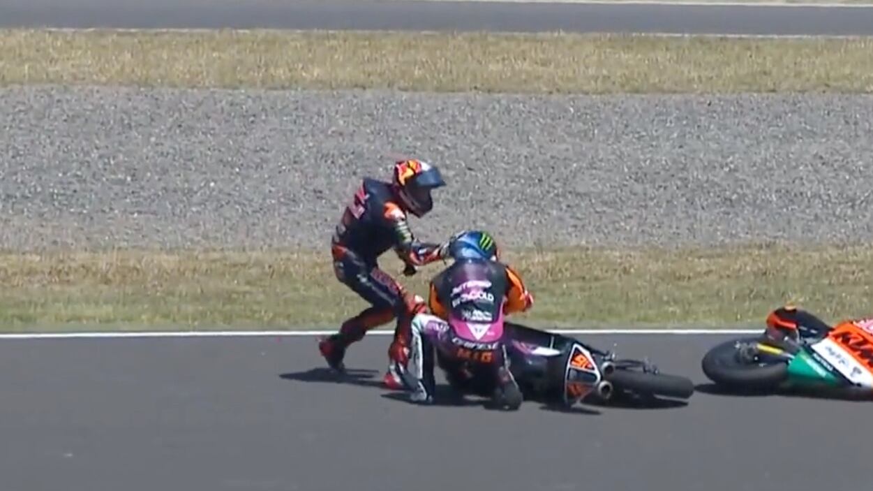 Durante el Gran Premio de la República Argentina, el italiano Andrea Migno (Honda) tuvo un contacto con el español Jaume Masia (KTM), en la vuelta 15.