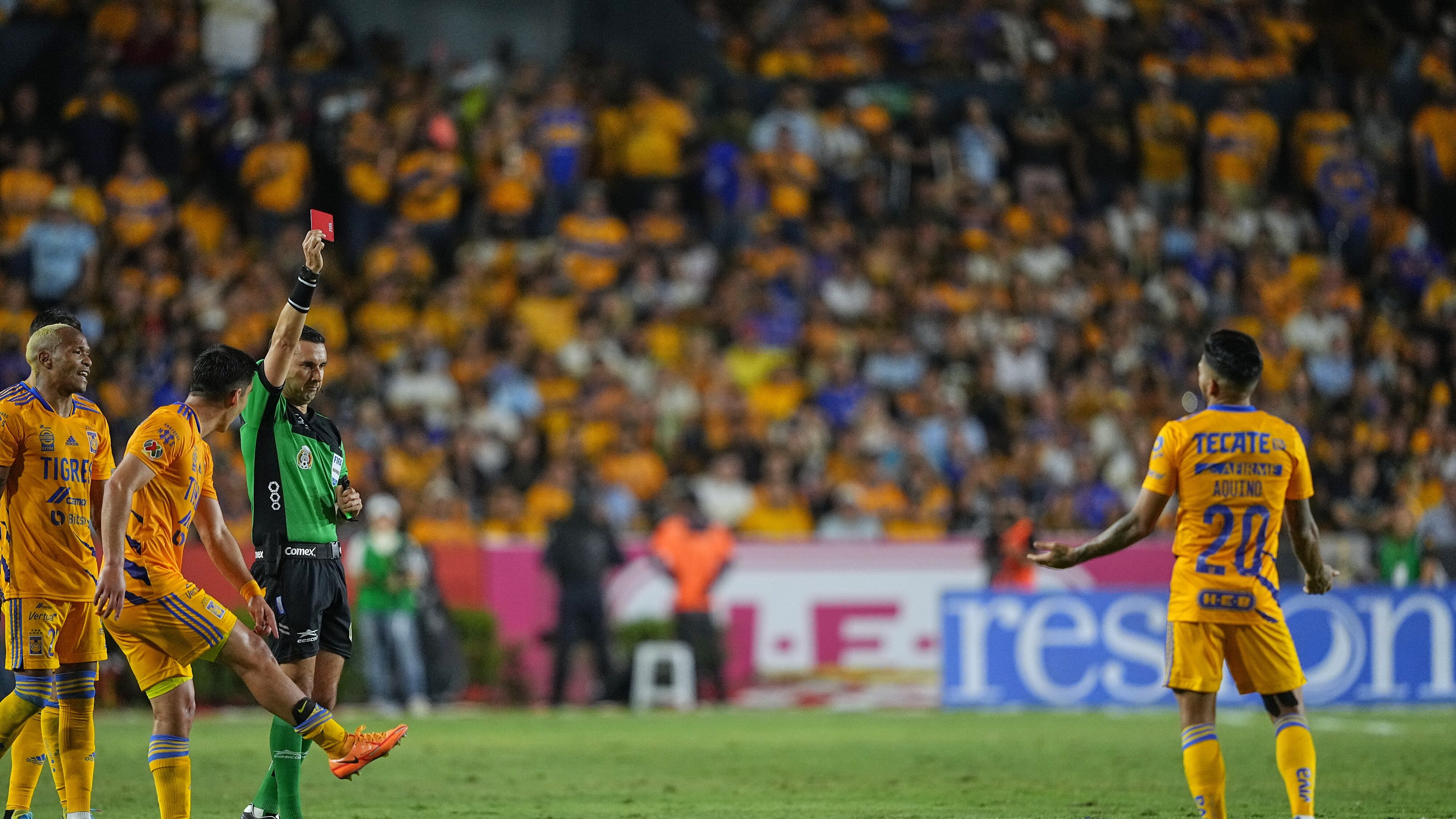 Tras revisar la jugada en el VAR, César Ramos no dudó en sacar la tarjeta roja al centrocampista de 32 años y dejó con un hombre menos a Tigres a 45 minutos del final del partido y con la eliminatoria empatada a un gol en el global.