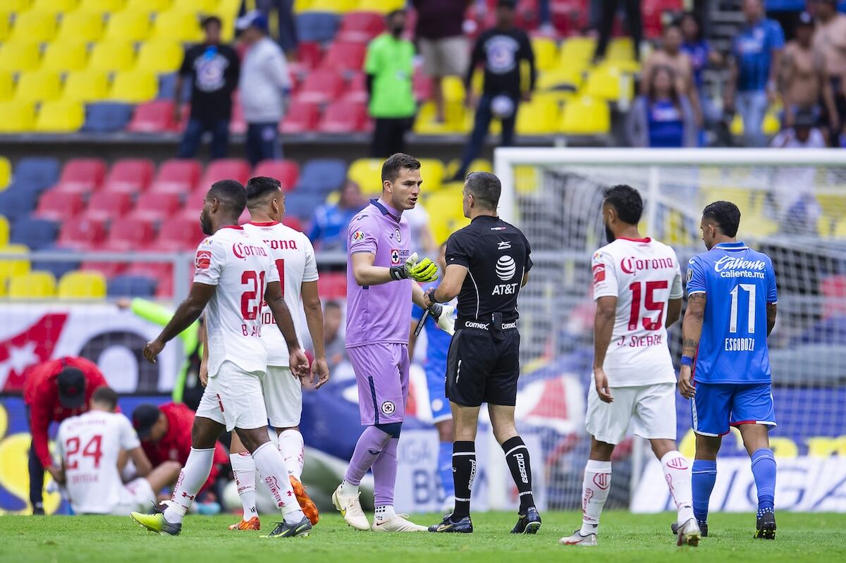 El arquero celeste recibió la tarjeta roja en los últimos minutos del partido entre Cruz Azul y Toluca. La decisión de Fernando Hernández fue porque determinó que Jurado hizo una agresión contra un atacante de los Diablos Rojos al momento de caer cuando despejó el balón de puños.
