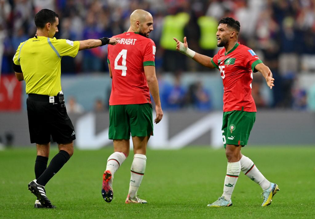 La Federación marroquí expresó su sorpresa por el hecho de que “los árbitros del VAR no hayan alertado al árbitro” de dos posibles penaltis en su favor, uno que reclamaban como penal de Theo Hernández a Soufiane Boufal, (el marroquí fue amonestado) y otro por una falta contra Selim Amallah cometida por Aurélien Tchouaméni.