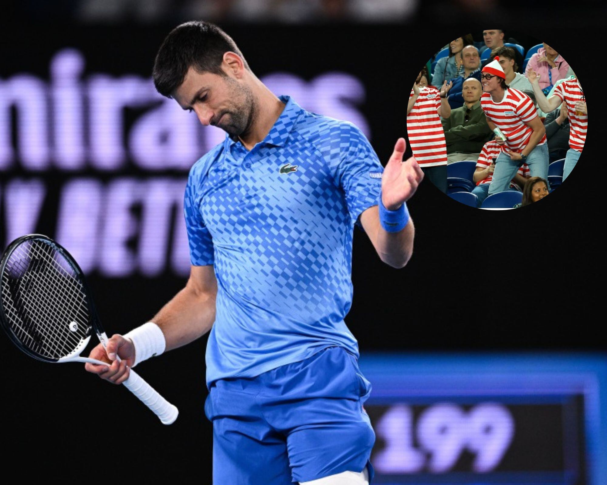 El 21 veces campeón de Grand Slam eventualmente se saldría con la suya, con un grupo de cuatro hombres vestidos con atuendos de “¿Dónde está Wally?” posteriormente escoltados fuera del estadio.