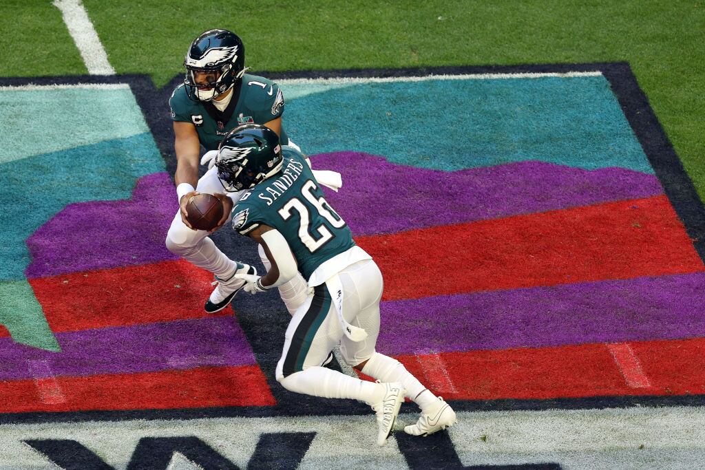 Después de una ofensiva de 75 yardas comandada por Jalen Hurts y 10 jugadas en el campo, fue el mismo QB quien anotó el primer touchdown por la vía terrestre en el State Farm Stadium.