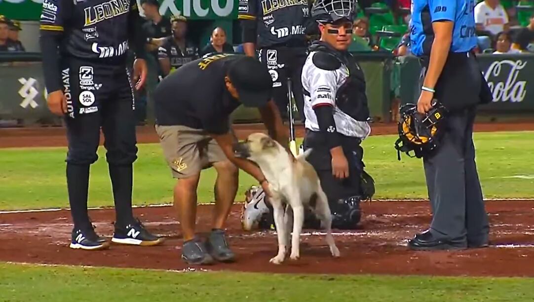Un suceso poco común se vivió en la Liga Mexicana de Beisbol durante el duelo entre Guerreros de Oaxaca y Leones de Yucatán, después de que un lomito irrumpió en el juego que se disputó en el el Estadio Kukulcán.