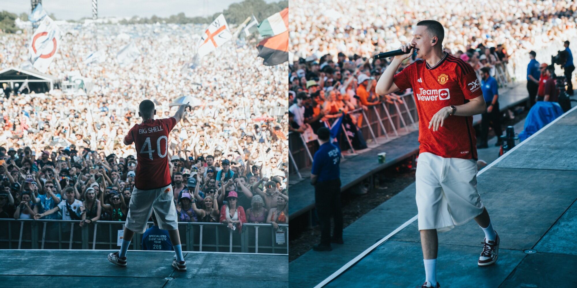 El intérprete conocido como Aitch, fue partícipe de la cartelera del Festival Glastonbury, ahí durante su presentación aprovechó para cambiarse la camiseta y ponerse la que sería la armadura de local de las Redes Devill’s para la campaña 2023/24.