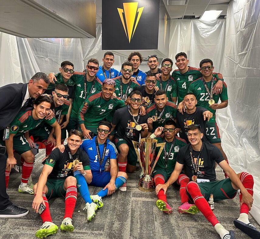 Al finalizar la ceremonia de premiación, los seleccionados aztecas continuaron con la fiesta en los vestidores del estadio y a través de redes sociales compartieron algunas imágenes de ella.