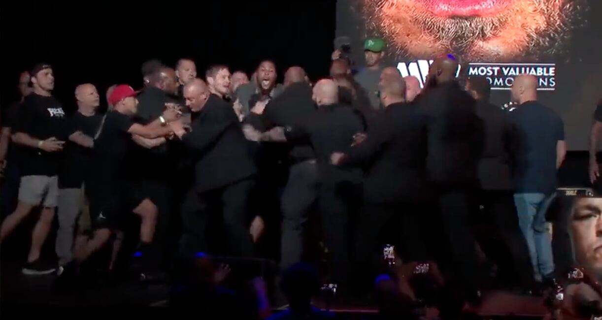 En la última conferencia de prensa previa a su pelea de este fin de semana, los dos contrincantes terminaron en los golpes, en unas imágenes que le comienzan a dar la vuelta al mundo.