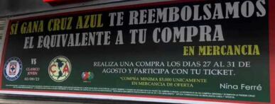 La promoción fue anunciada por medio de un cartel afuera de la tienda que dice, “si gana Cruz Azul, te reembolsamos el equivalente a tu compra en mercancía”.