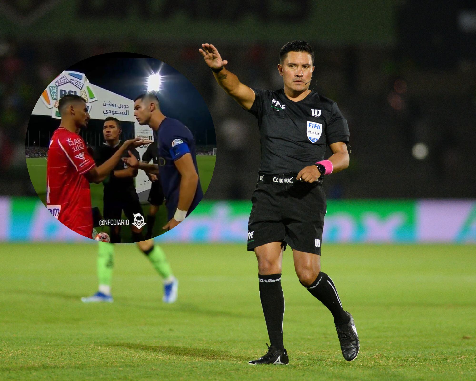 El silbante mexicano, Fernando ‘el Cantante’ Guerrero, dirigió las acciones del duelo entre el Al Wahda y el Al Nassr de Cristiano Ronaldo, de la Liga de Arabia Saudita, partido donde el astro portugués anotó el tercer tanto de su equipo.