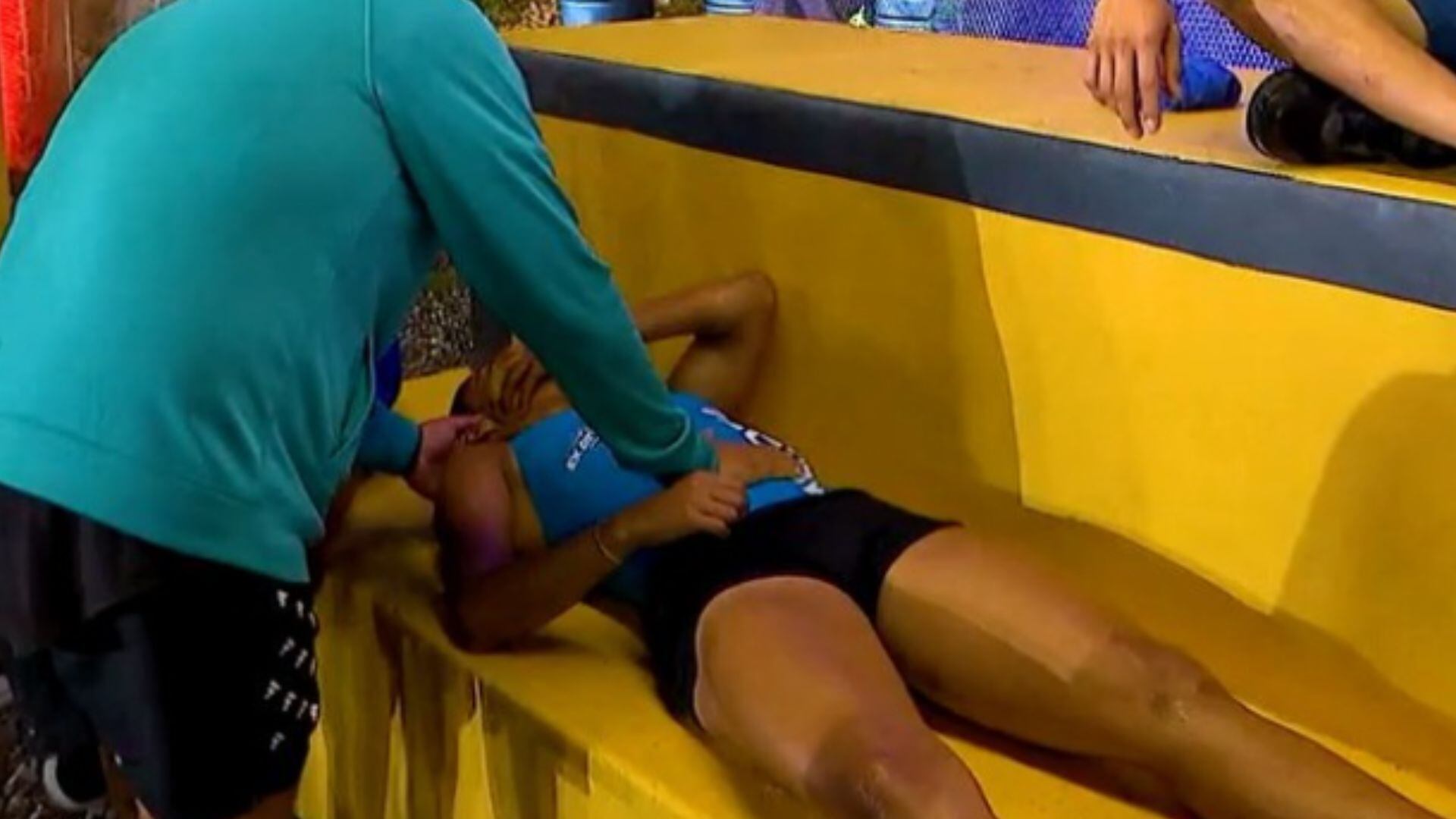 En un video publicado por la cuenta oficial del reality show, se observa a Medina corriendo por la pista cuando pierde el equilibrio debido al agua que había en el suelo, la atleta se golpea la cabeza contra un tubo y cae de espaldas sobre una colchoneta.