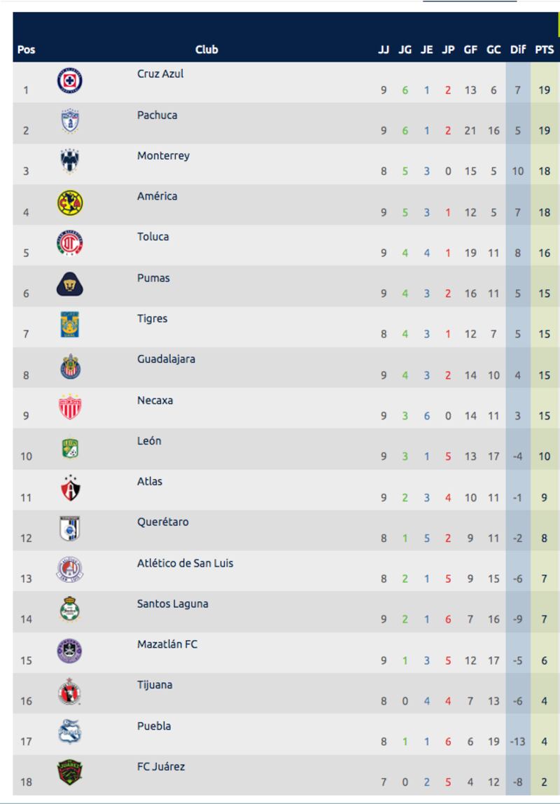 Pero el Cruz Azul es perseguido de manera silenciosa por el proyecto del Pachuca, que igualó 1-1 ante Necaxa y se encuentra también, con 19 unidades.
