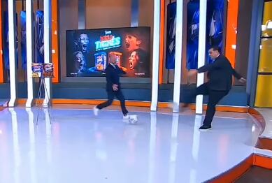 Fue durante un momento donde compartieron pantalla en donde ambos comenzaron a jugar con los esféricos que se encontraban en el foro. García inició intentando dar un balonazo a Martinoli sin éxito y posterior a ello, el narrador pidió una pelota a la producción para patearla frente al exfutbolista con violencia, generando un gracioso momento.