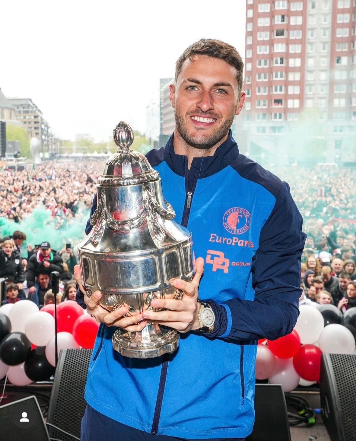 Santiago Giménez fue campeón con el Feyenoord en el estadio De Kuip y festejaron en Rotterdam, donde miles de aficionados se reunieron para celebrar a su equipo luego de que ganaran la Copa de Países Bajos ante el NEC el pasado domingo 21 de abril.