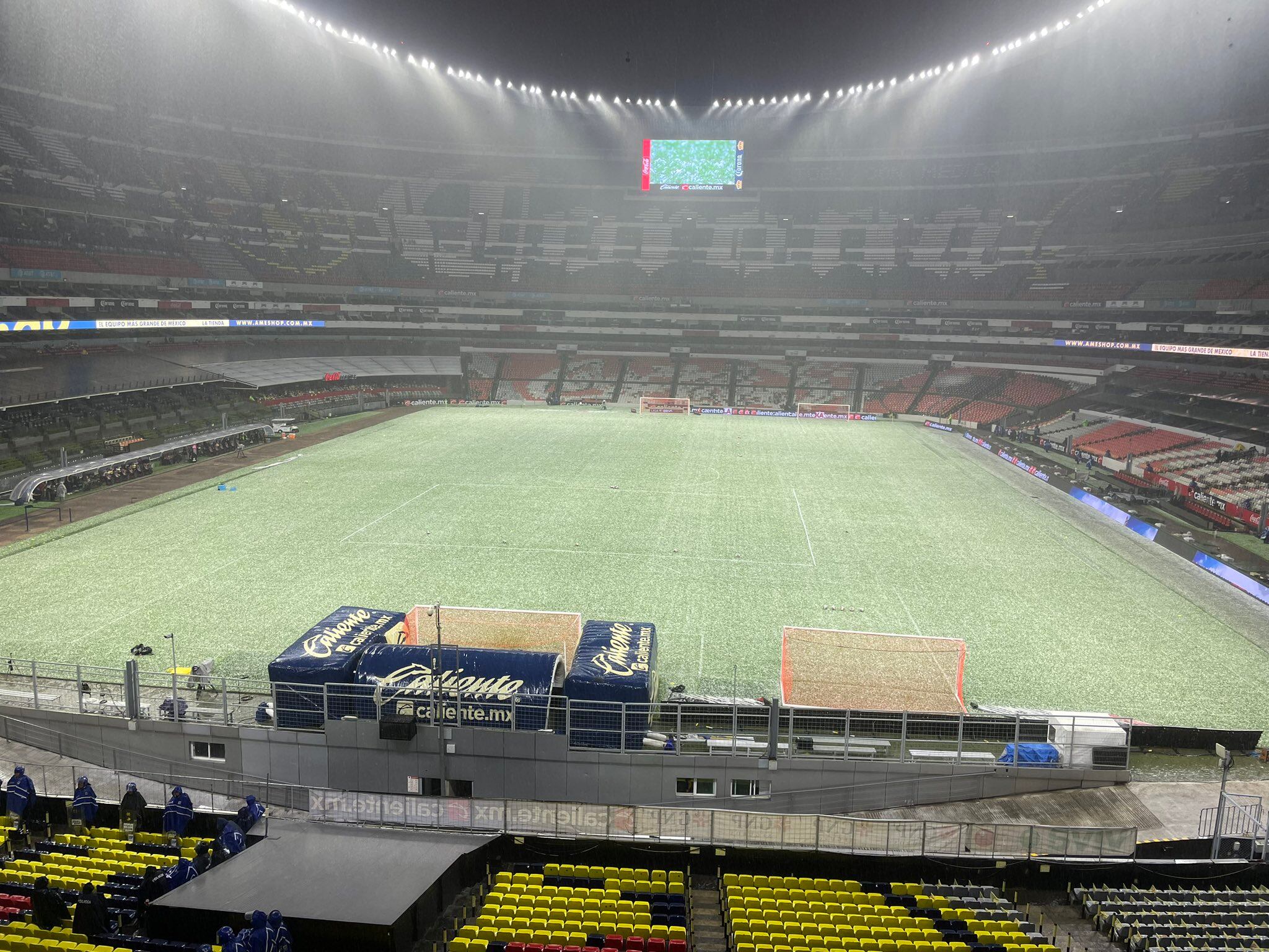 De manera oficial, la final de ida de la Liga MX Femenil entre el América y Rayadas sufrió un retraso de más de una hora debido a una fuerte tormenta acompañado de granizo que azotó de manera fuerte en el Estadio Azteca minutos previo de este cotejo.