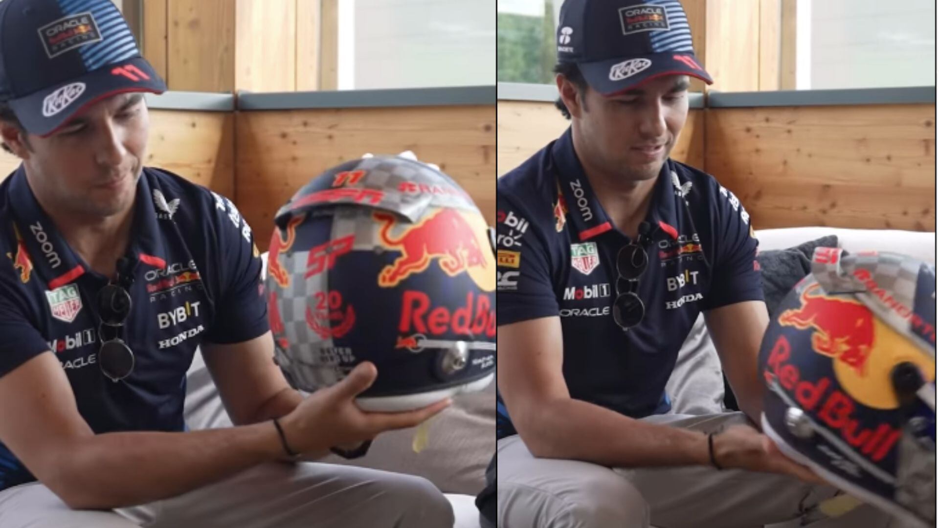 El piloto mexicano de Red Bull Racing, Sergio ‘Checo’ Pérez, presentó un casco edición especial para el fin de semana del Gran Premio de Gran Bretaña en Silverstone, con el que rinde homenaje a los 20 años de historia del equipo austriaco en la Fórmula 1, destacando su trayectoria y éxito en la máxima categoría del automovilismo.