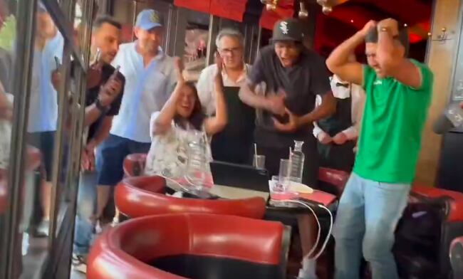 En diferentes videos que circulan en redes sociales, se observa a la familia de la judoca en un local cercano al lugar de la pelea observando con atención el combate.