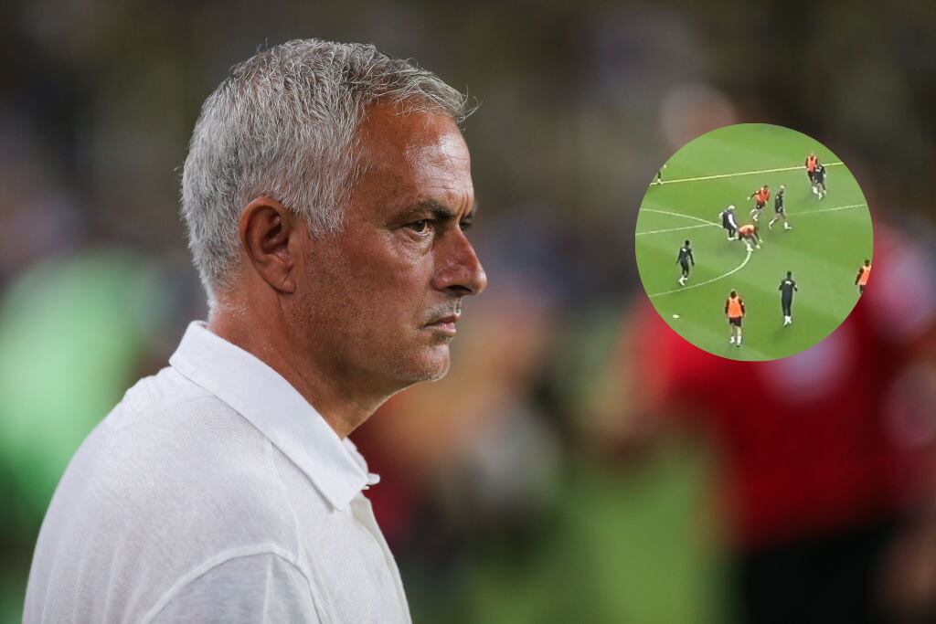 José Mourinho, entrenador del Fenerbaçhe, sufrió una lesión en la rodilla después de que fuera derribado por uno de sus propios jugadores mientras se desarrollaba el entrenamiento del club turco.
