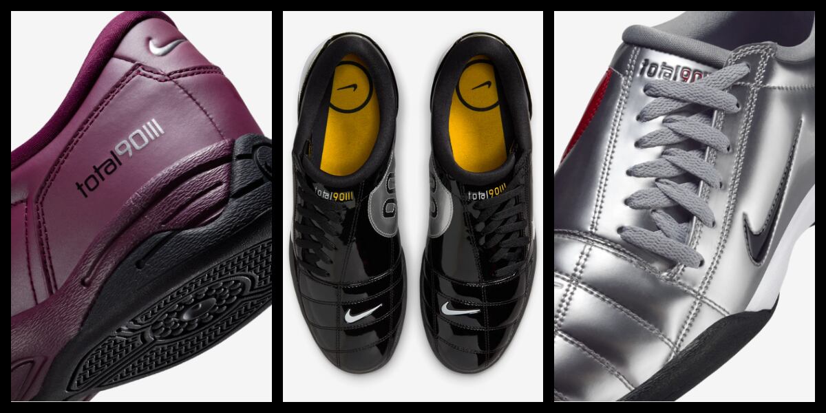 “Nacidos en la cancha en el año 2000, los Total 90 dejaron una herencia duradera en este hermoso juego. Ahora están de vuelta y listos para las calles con el estilo de futbol auténtico, recargado para la actualidad. Esta edición moderna cambia los tacos por una suela de goma que mantiene la icónica parte superior acolchada y las agujetas asimétricas de los originales”, es la descripción de estos nuevos zapatos.