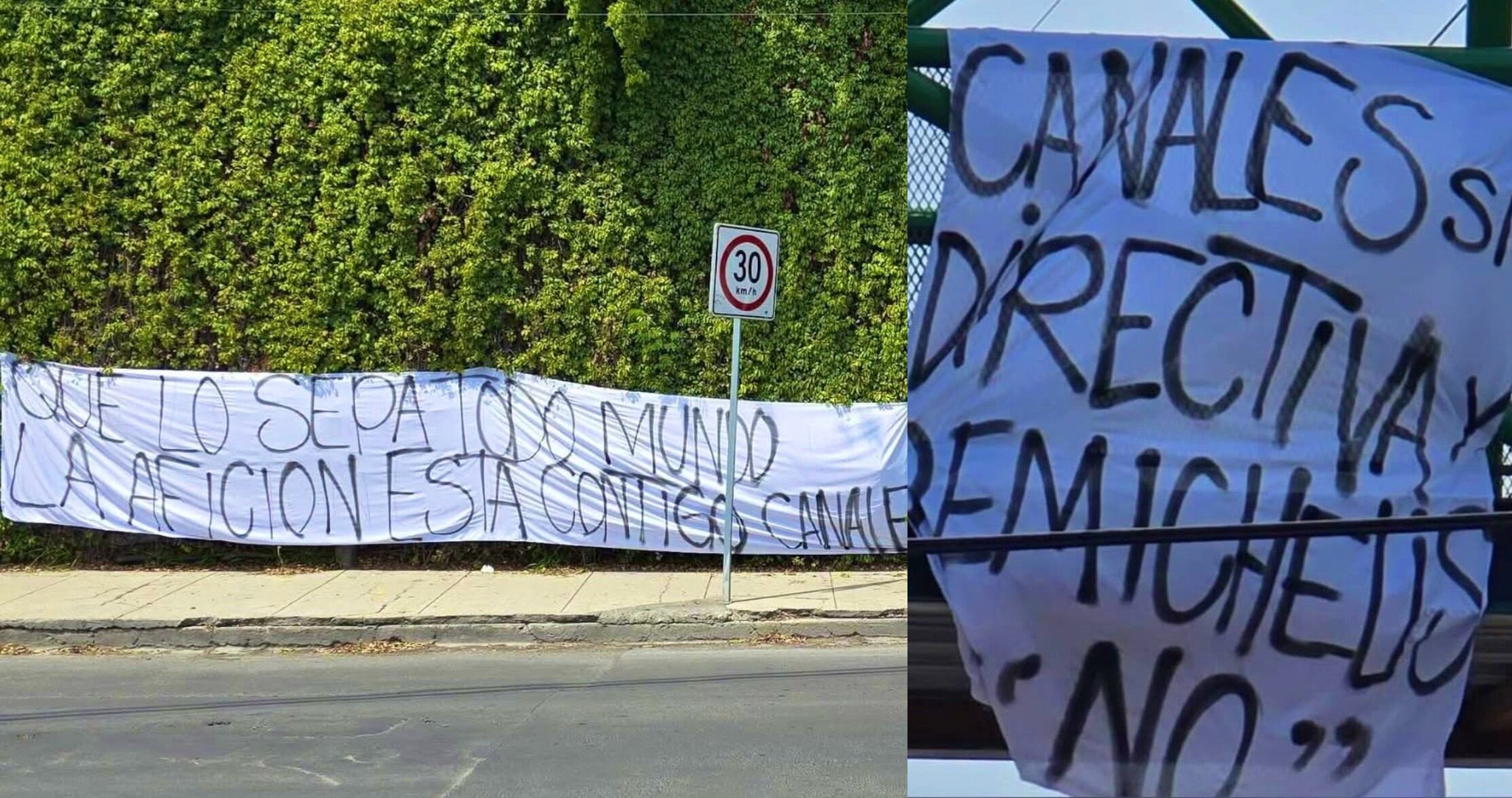 “Canales sí, directiva y Demichelis no” y “Que lo sepa todo el mundo, la afición está contigo, Canales”, fueron las mantas que se pudieron ver respaldando a su jugador. Mencionar que para muchos el español es el motor y líder del equipo, por lo que es una mala idea elegir el proyecto por encima del atacante.