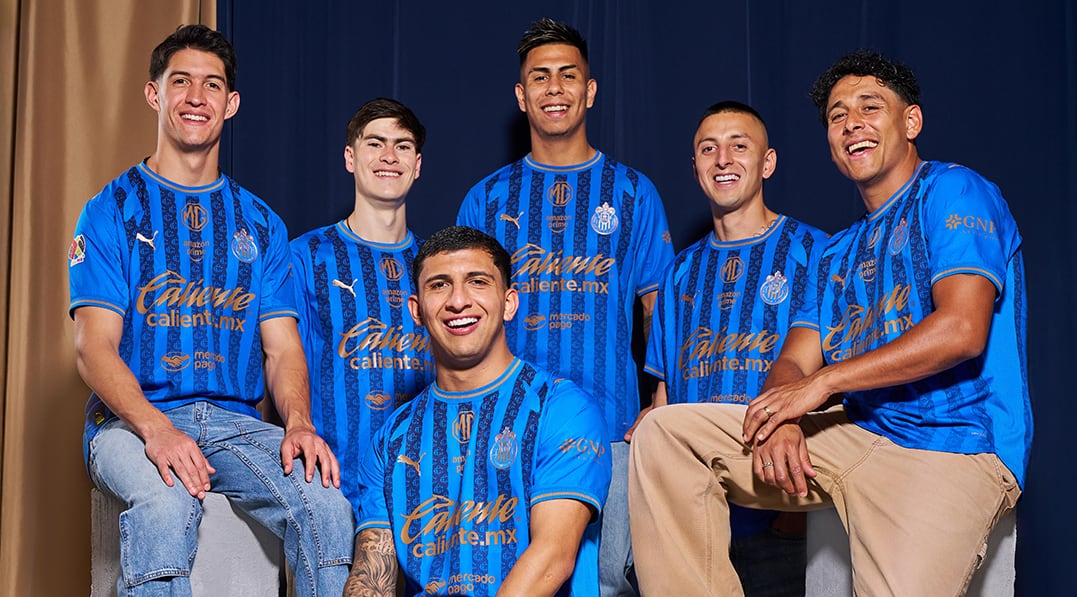 Diseñado por PUMA, el jersey se construye sobre una base de rayas azules que aportan profundidad visual y una lectura distinta dentro del universo rojiblanco. En el patrón aparecen, de forma sutil, referencias al escudo antiguo de Chivas y a la historia del club que se integra con naturalidad a una estética moderna y elegante.