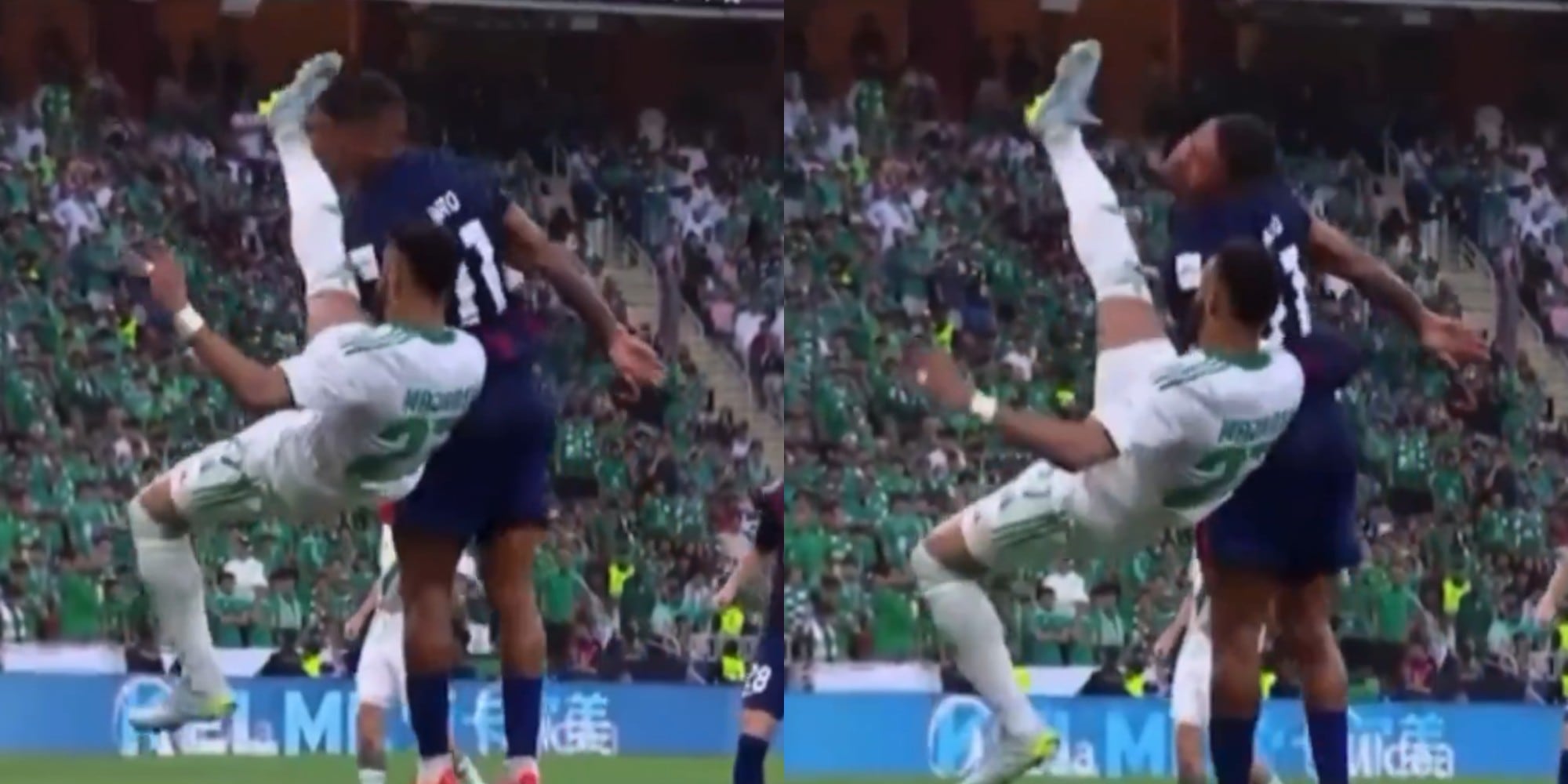 Corría el minuto 37 del duelo de cuartos de final entre el Johor Darul Ta’zim y el Al-Ahli, cuando se produjo la jugada que encendió las alarmas. El defensor Ali Majrashi intentó despejar un balón aéreo con una chilena, pero en lugar de hacer contacto con la pelota, terminó impactando de lleno el rostro de Jairo, quien buscaba rematar de cabeza.