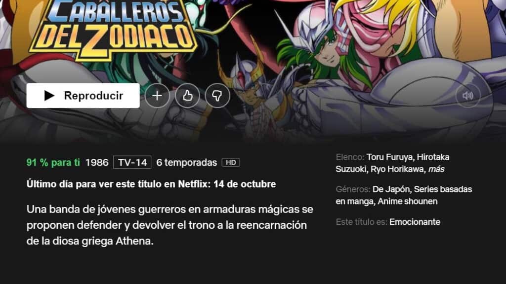 Sorprendente pero cierto: Netflix desechará de Saint Seiya, una de las series más míticas de la televisión. Los Caballeros del Zodíaco ha sido uno de los animes más amados por aquellos que crecieron durante las décadas de los 80s y 90s. Muchas de estas personas se alegraron cuando la adaptación de la obra de Masami Kurumada llegó a Netflix hace un par de años. Sin embargo, si aún no has visto este clásico, será mejor que lo hagas inmediatamente, ya que Los Caballeros del Zodíaco abandonarán esta plataforma de streaming el 14 de octubre de 2021.