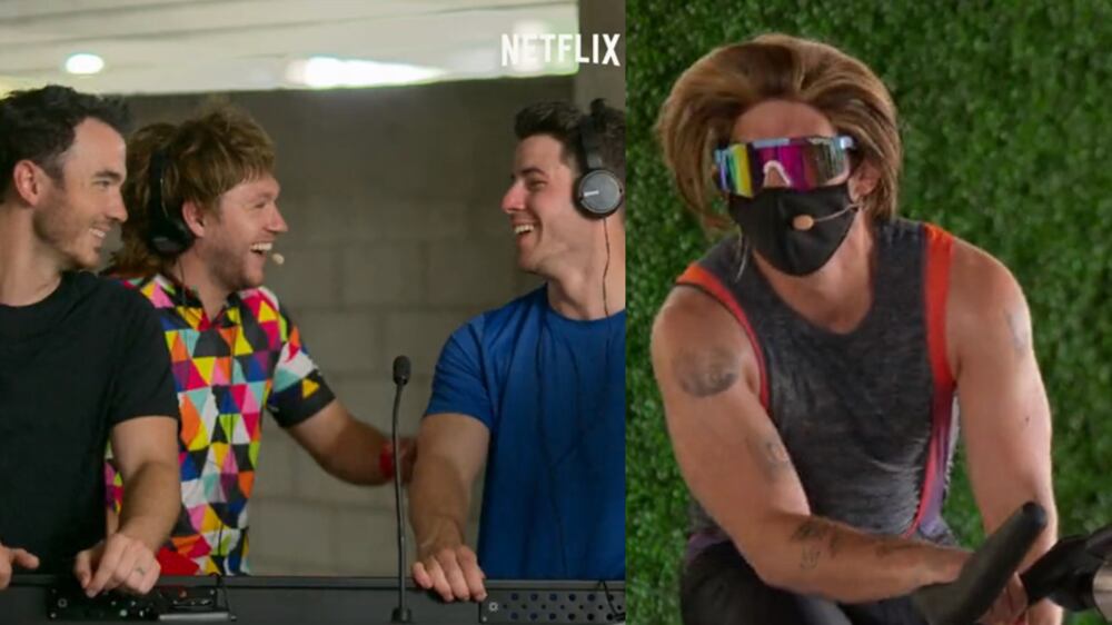 ¡Todos quieren ver el roast de los Jonas Brothers! Joe Jonas y Niall Horan se infiltraron en una clase de spinning como una broma que forma parte del especial de comedia de Netflix, “The Jonas Brothers Family Roast”. Ambos cantantes se disfrazan con pelucas extravagantes, gafas de sol de color caramelo y atuendos de ciclismo extagerados, para pasar poco desapercibidos.